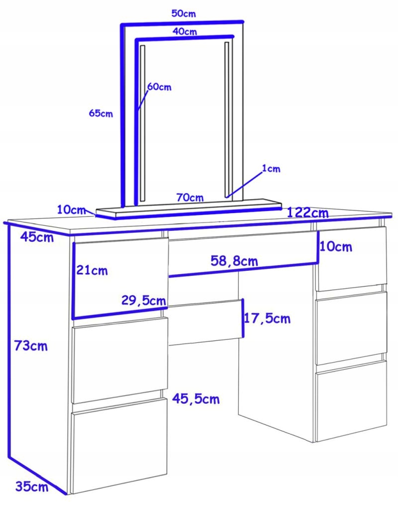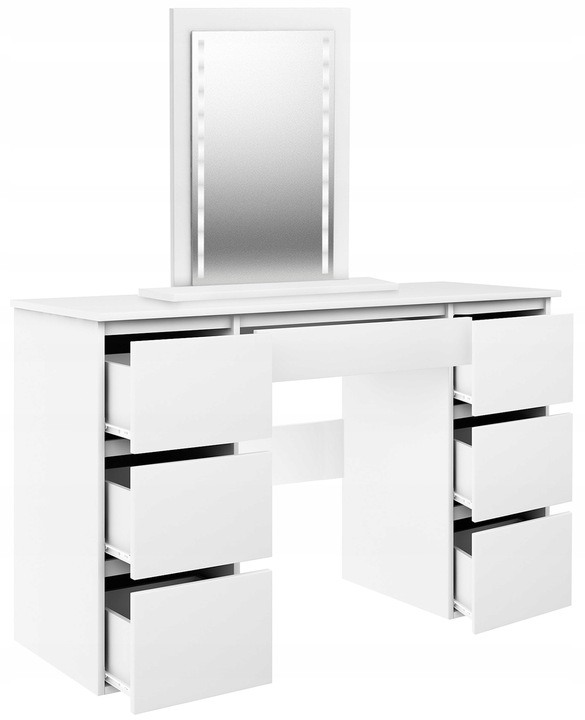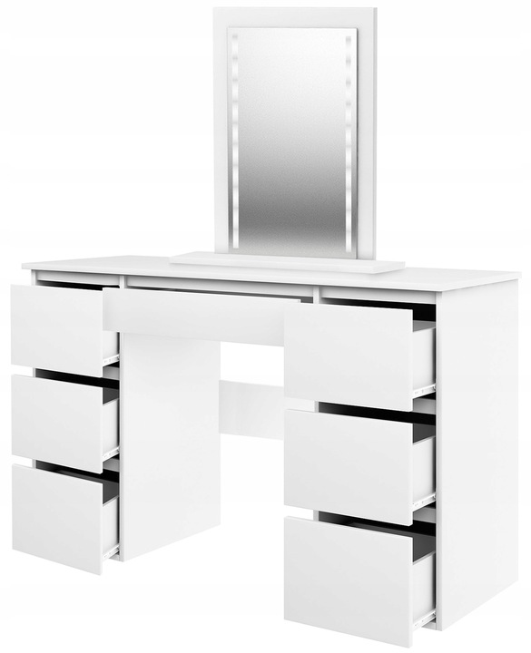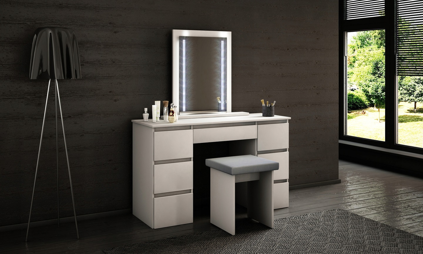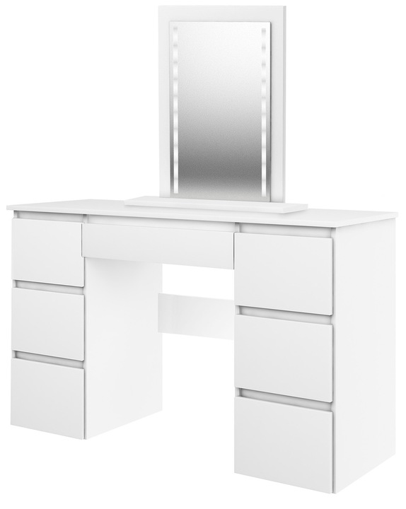 A free-standing mirror if the dressing table is placed directly against the wall. If the dressing table is moved away from the wall, screw the mirror to the bottom of the table top. The mirror can be placed any where.