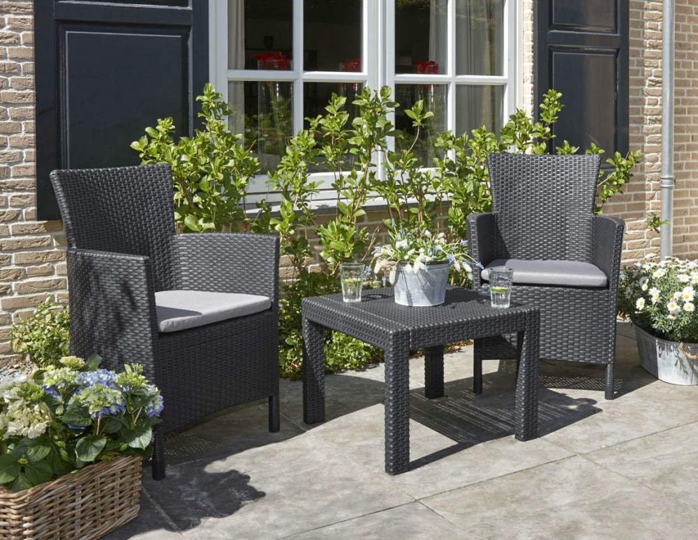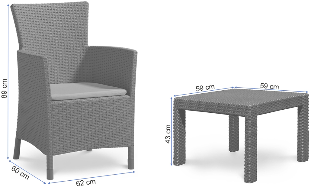 The Rosario balcony set can be enjoyed everywhere. Whether you have a small terrace or a balcony, this set will make your outside living area summer ready. Its shape gives these chairs their elegant and classic appearance. The included cushions add to the seating comfort for a summer evening spent outside. Above all it is maintenance free and easy to move.